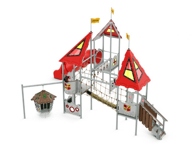 Inspirées des châteaux forts médiévaux, nos aires de jeux captivent l’imagination des enfants. Tours, ponts-levis, toboggans et tunnels se combinent pour créer des parcours d’aventure passionnants. Ces éléments permettent aux enfants de développer leur créativité tout en s’amusant. Les couleurs vives et les détails soignés ajoutent une touche de magie à chaque espace de jeu.