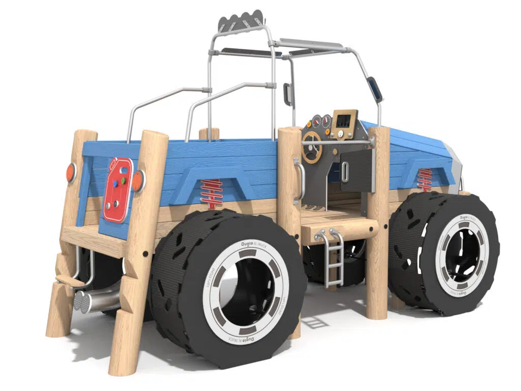 Le 4X4 Rôles Robinier est un jeu de rôle robuste et captivant, conçu pour les collectivités, les mairies, les campings et les gestionnaires de parcs et jardins souhaitant offrir aux enfants un espace de jeu sécurisé et stimulant. Fabriqué en robinier massif, un bois naturellement résistant aux intempéries et à la pourriture, ce véhicule allie durabilité, sécurité et esthétique naturelle, apportant un véritable élément de charme et d’authenticité à tout espace extérieur.