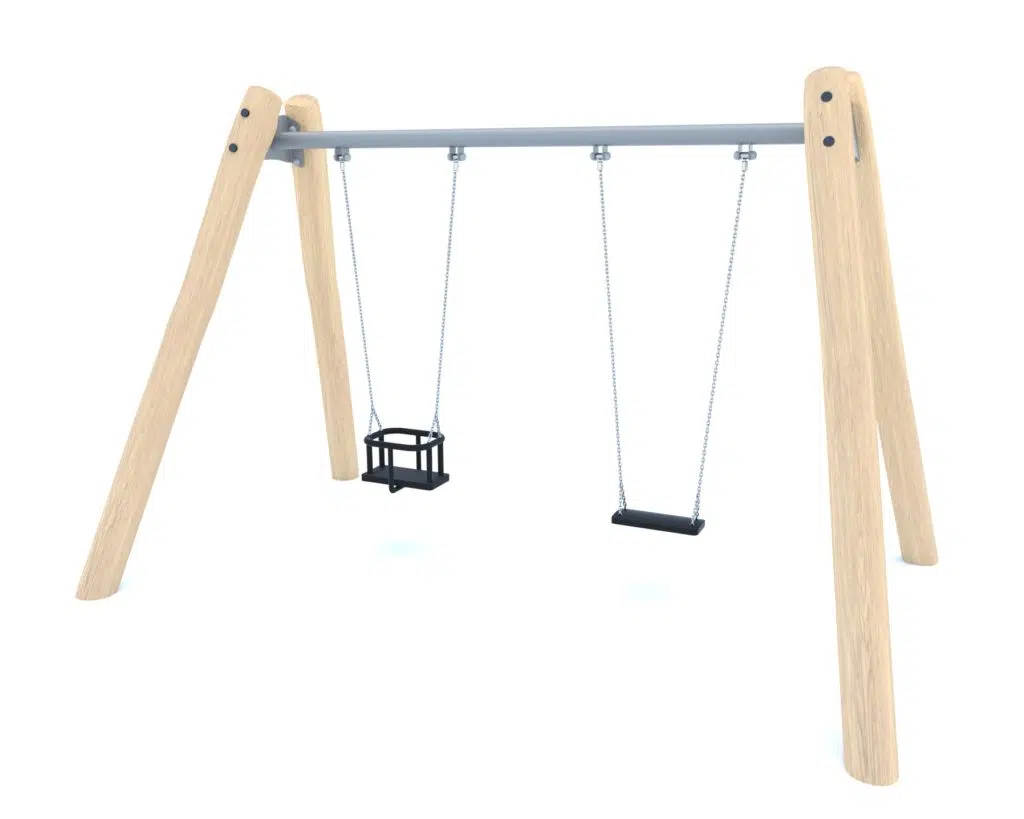 La Balançoire Double Simple Robinier 3 est un équipement de jeu conçu pour offrir aux enfants de 1 à 12 ans une expérience ludique sécurisée, durable et naturelle. Pensée pour les aires de jeux municipales, parcs, campings et jardins publics, elle permet à deux enfants de se balancer simultanément, favorisant ainsi le jeu collectif, la socialisation et la coopération dans un environnement sûr.