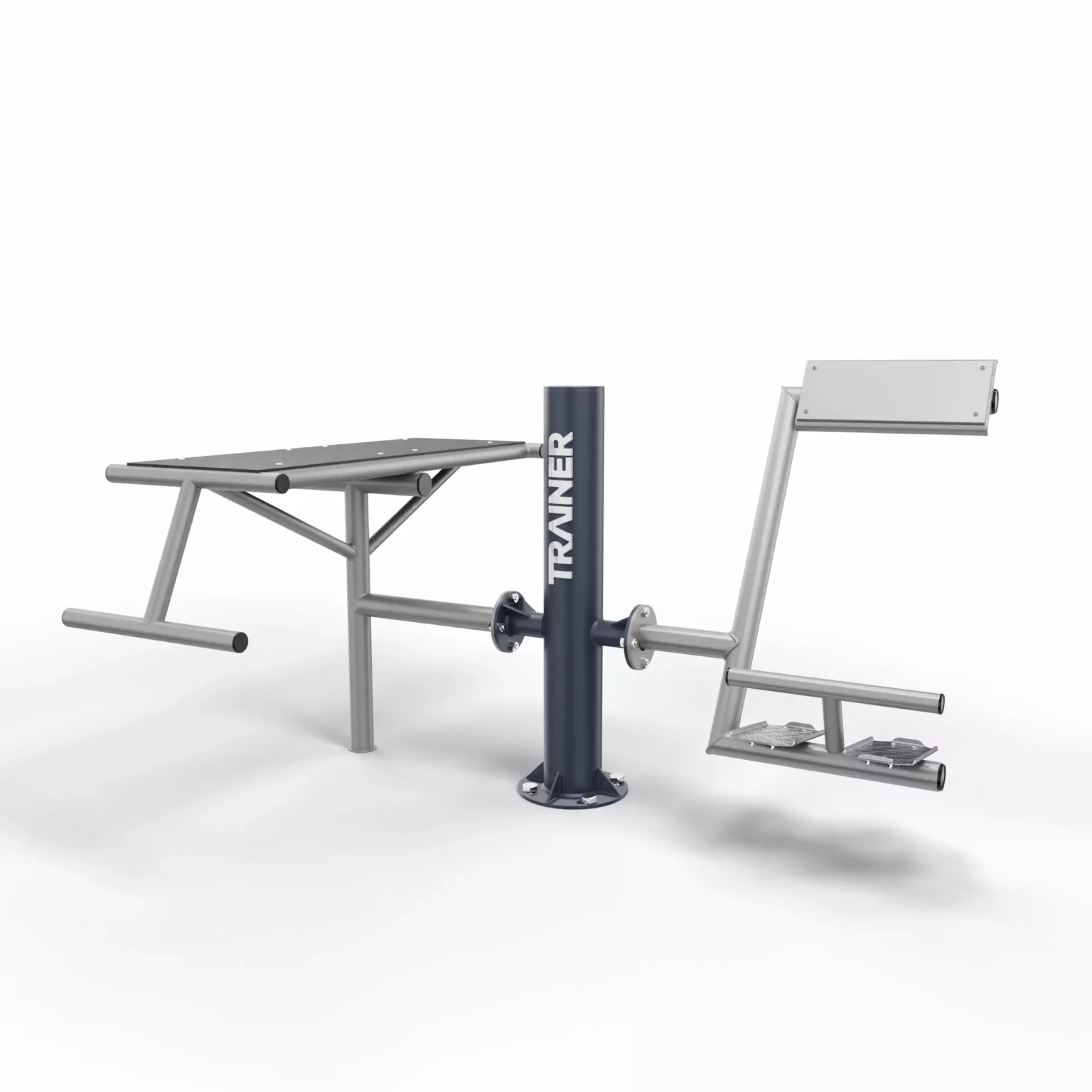 Banc Training: Selon la manière dont les exercices sont effectués, l’appareil permet de renforcer différents muscles, tels que les muscles abdominaux droits et obliques, le muscle iliopsoas, ainsi que les quadriceps.