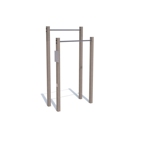 Fabriquées en inox, bois et acier, les barres asymétriques sont conçues pour une utilisation extérieure intensive. Les matériaux sélectionnés offrent une excellente résistance aux intempéries, à la corrosion et à l’usure, tout en conservant une esthétique soignée. La structure robuste garantit une stabilité maximale et répond aux normes de sécurité en vigueur pour les équipements destinés aux collectivités et aux espaces publics.