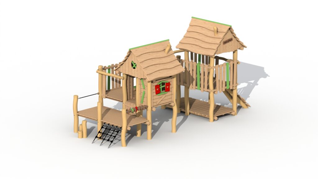 Avec son design naturel et chaleureux, la Double Cabanne Forestier Robinier s’intègre parfaitement dans les parcs, jardins, campings et autres espaces extérieurs. Elle peut être installée seule ou combinée à d’autres équipements de jeu pour créer une aire de jeux cohérente, fonctionnelle et esthétique.