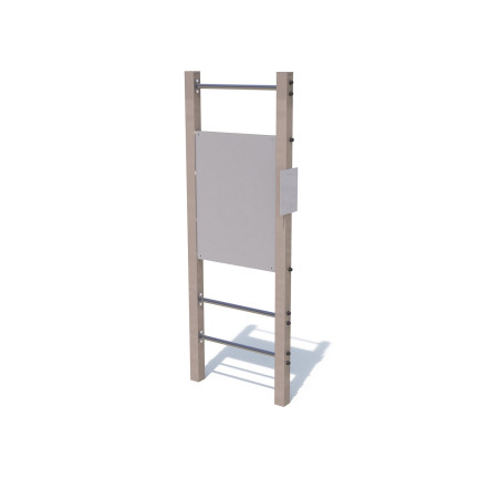 Avec des dimensions de 0,85 m de longueur, 0,08 m de largeur et 2,29 m de hauteur, et une HCL de 1,20 m, cet espalier offre un parcours progressif et sécurisé pour les jeunes utilisateurs. La section de 80 x 80 mm combinée à des barreaux de Ø33,7 x 2,6 mm et à une visserie zinguée assure une solidité et une stabilité optimales, permettant un usage intensif même en extérieur. L’espace minimum nécessaire pour l’installation est de 3,9 x 3,1 m, offrant une intégration facile dans tout type de parcours aventure ou aire de jeux.