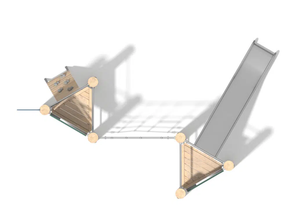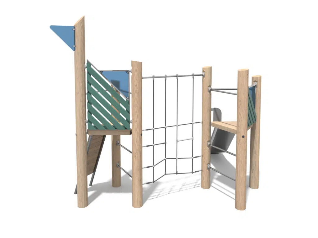 Cette structure met l’accent sur les activités de grimpe, offrant aux enfants la possibilité de développer leur motricité, leur équilibre et leur coordination. Les prises ergonomiques et les plateformes sécurisées permettent une escalade progressive, adaptée aux enfants de 3 à 12 ans. La grimpe stimule non seulement la force et l’agilité, mais aussi la confiance en soi et l’autonomie, tout en encourageant le jeu collectif et la socialisation.