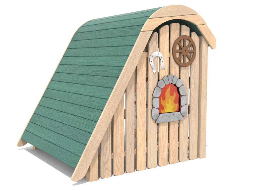 Fabriquée en bois de robinier, une essence réputée pour sa résistance exceptionnelle aux intempéries et aux insectes, cette maisonnette ne nécessite aucun traitement chimique. Les tons bois et verts s’intègrent parfaitement dans les espaces verts, valorisant les parcs, jardins publics et aires de jeux tout en créant un cadre apaisant et naturel. Sa structure ferméeoffre un espace sûr pour les enfants, leur permettant de développer leur créativité, leur imagination et leur sens du jeu de rôle, tout en favorisant la socialisation.