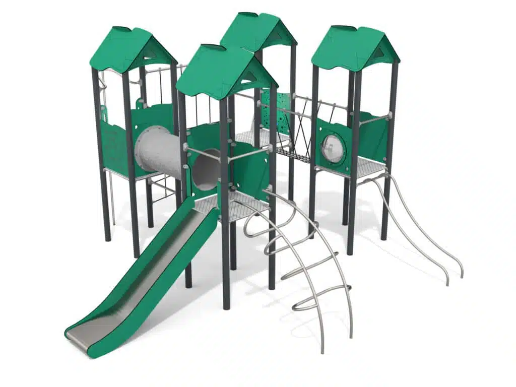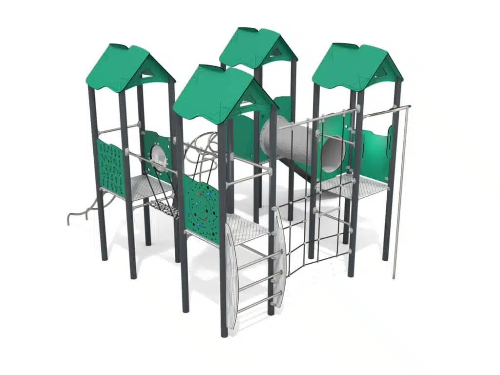 Pensé pour encourager la motricité, le sens de l’équilibre et la coordination, le Recy’Arena intègre plusieurs zones de grimpe permettant aux enfants de tester leurs capacités et de relever de petits défis adaptés aux différentes tranches d’âge. Le parcours offre des prises variées, des hauteurs progressives et des éléments d’ascension qui renforcent la confiance et le plaisir du jeu. Le tout s’accompagne d’un toboggan parfaitement intégré à la structure, garantissant des moments de glisse dynamiques et sécurisés, très appréciés des plus jeunes comme des plus grands.