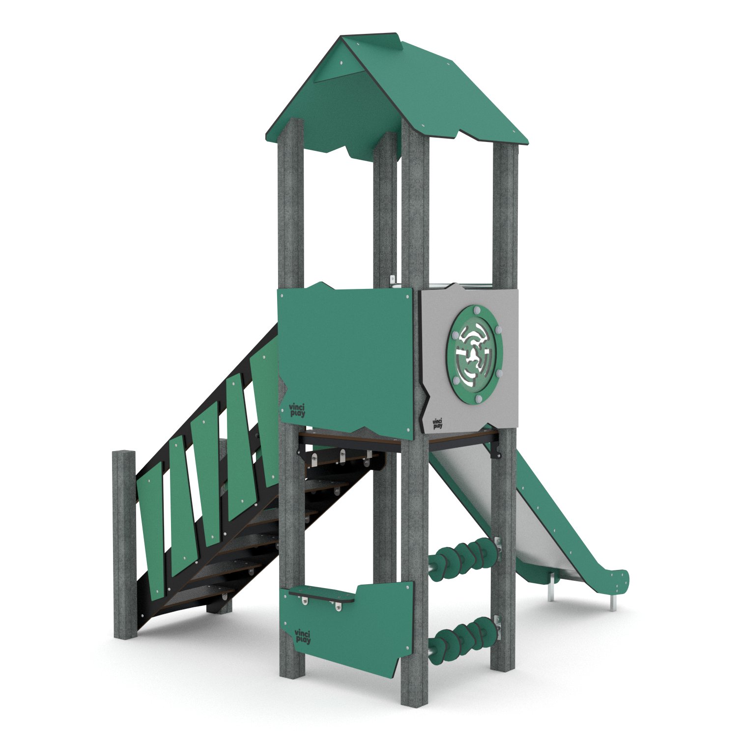 Avec son toboggan intégré et ses zones de jeu modulables, le Recy’Park permet aux enfants de grimper, glisser et explorer différents parcours. Ces activités stimulent la motricité, l’équilibre, la coordination et favorisent le développement de la créativité et de l’autonomie. Les multiples points d’accès et plateformes offrent la possibilité d’accueillir plusieurs enfants simultanément, encourageant ainsi le jeu collectif et la socialisation. Sa conception ergonomique et ludique transforme chaque aire de jeux en un véritable espace d’aventure pour les jeunes utilisateurs.