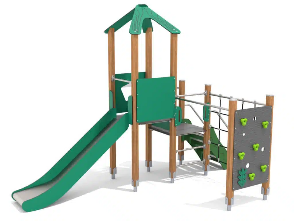 Apportez un espace de jeu sûr, amusant et respectueux de l’environnement avec Recy’Tree, une structure conçue spécialement pour les mairies, collectivités, campings et parcs et jardins. Adaptée aux enfants de 3 à 12 ans, cette aire de jeux combine des modules de grimpe, un toboggan et des zones d’exploration pour favoriser l’équilibre, la motricité et la créativité des enfants.
