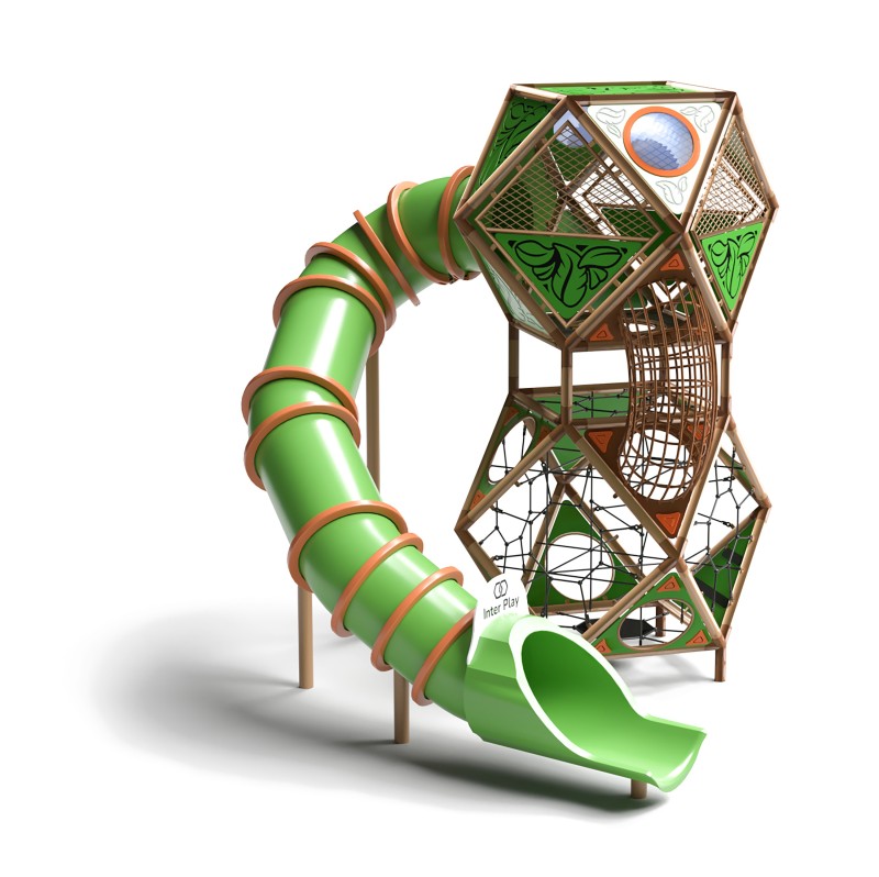 Son design organique et immersif permet une intégration harmonieuse dans les environnements extérieurs, qu’il s’agisse de parcs urbains, de jardins publics ou de campings. Il valorise les espaces verts existants et crée une ambiance naturelle, attirant enfants et familles et renforçant l’attractivité du site. Ce module devient rapidement un point central de l’aire de jeux, offrant un espace stimulant et convivial.