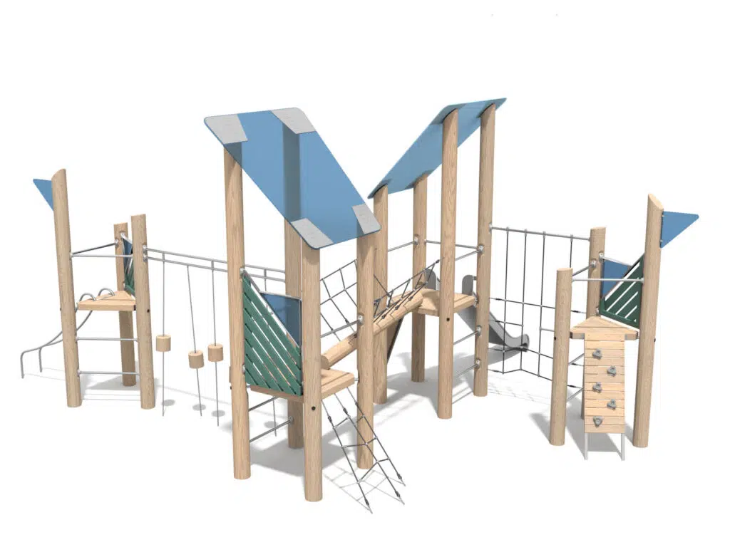 Cette structure multi-activités offre une variété d’options de jeu qui stimulent l’agilité, la motricité, l’équilibre et la coordination des enfants de 3 à 12 ans. Elle intègre des zones d’escalade, des toboggans, des passerelles et des plateformes sécurisées, permettant aux enfants de développer leur force, leur équilibre et leur confiance en eux dans un cadre sécurisé. Les activités variées encouragent également le jeu symbolique, la socialisation et la créativité, tout en favorisant la régulation émotionnelle et la coopération entre les enfants.